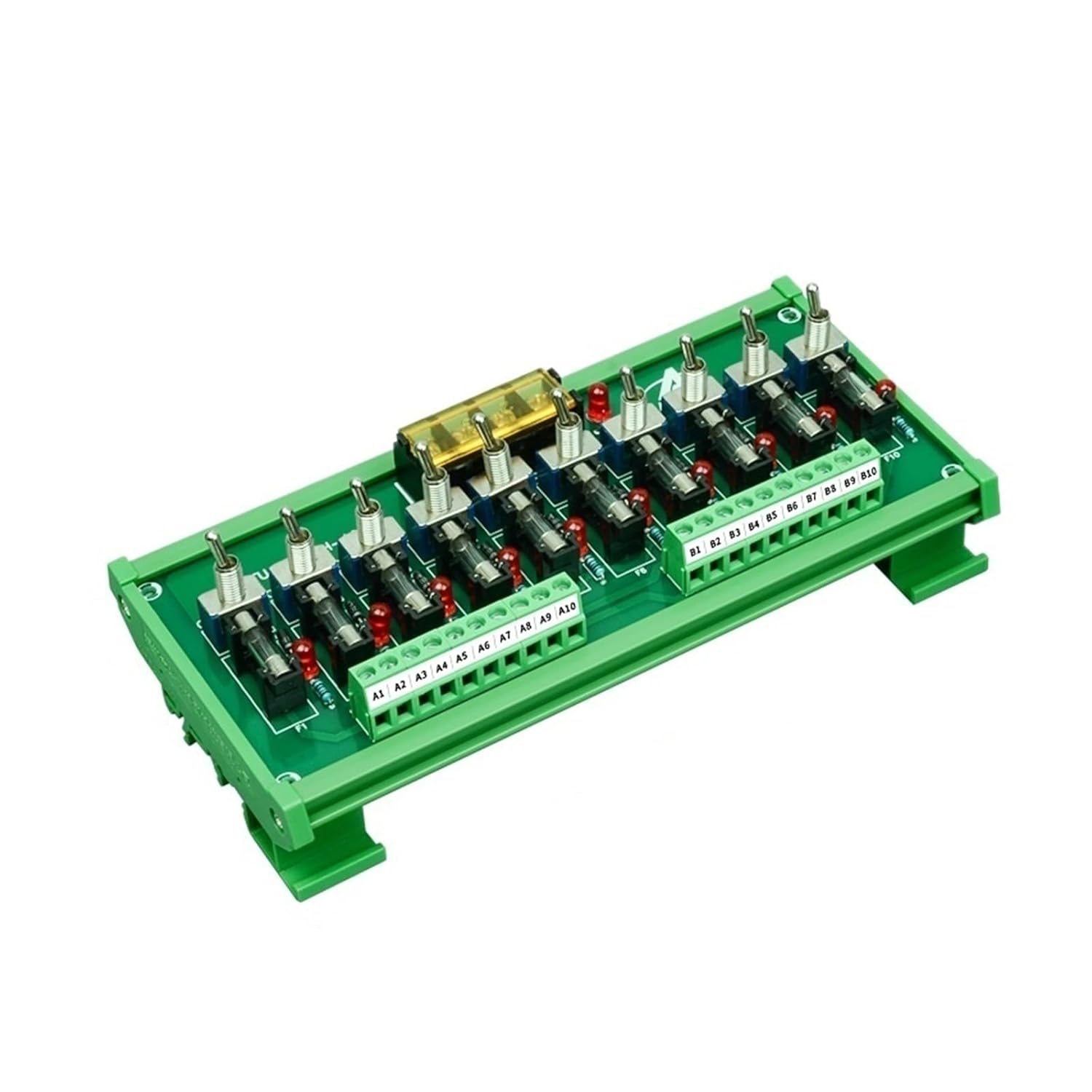 Disconnect Blocks1. Rated voltage: 12-24VDC. Maximum rated current 5 amps (per channel).2.ON-OFF switch.3. Terminal spacing 7.62mm/0.3", removable cover, metric M3 screws. With vinyl insulated spade connector, can support cable 16-14AWG/conductor cross section 1.5-2.5 square millimeters.4. Support wall mounting (ear-mounted or embedded), screw mounting, and DIN rail mounting with a width of 35mm, 32mm, and 15mm.