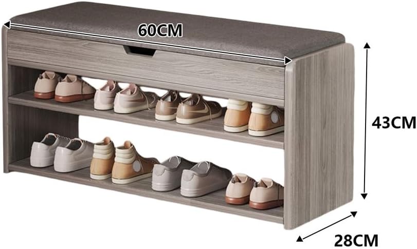 Placing the shoe bench as a bench or an organizing rack in the entryway, hallway, living room, bedroom, balcony, or behind a door is very elegant and complements various home decor styles. The storage bench 's sturdy structure gives it a strong load-bearing capacity, and the large capacity allows you to store more shoes.Detailed Description:Product Name: Shoe Bench Material: Density boardpacking list:Shoe rack *1Feature:-1.One step shoe changing and storage-2.Can sit and store, easy and convenient to change shoes for daily use-3.Rebound sponge filling, good supportNotes1.Due to different monitors and lighting, the picture may not show the actual color of the product. Please refer to the actual picture. Thank you.2.Please allow the 1-3cm error due to manual measurement and make sure you do not mind before ordering.Product Care Instructions: Wipe With Dry Cloth. Avoid Direct Sunlight And Moisture. Dust Regularly.