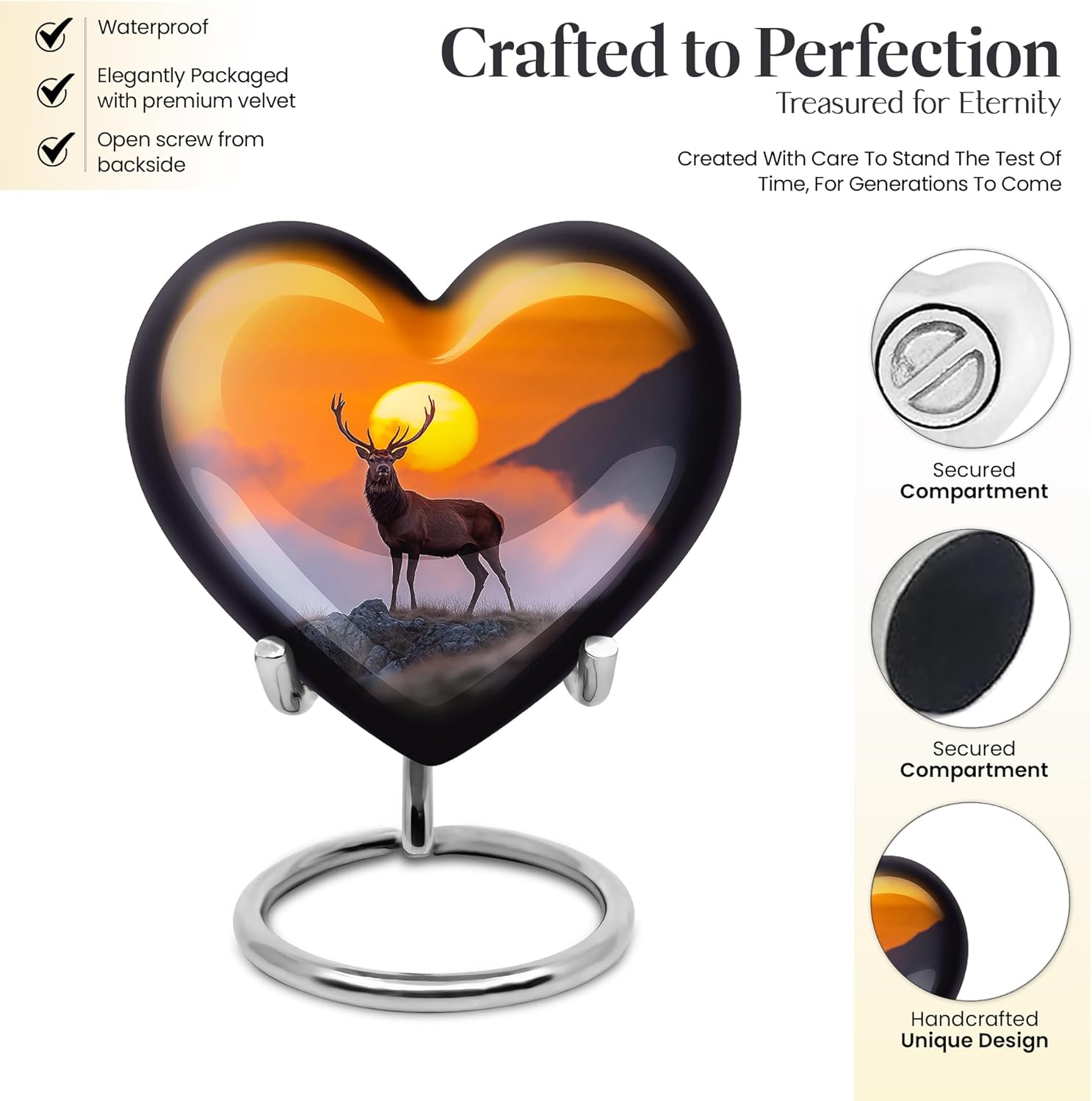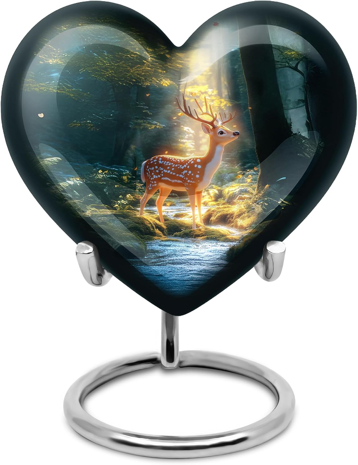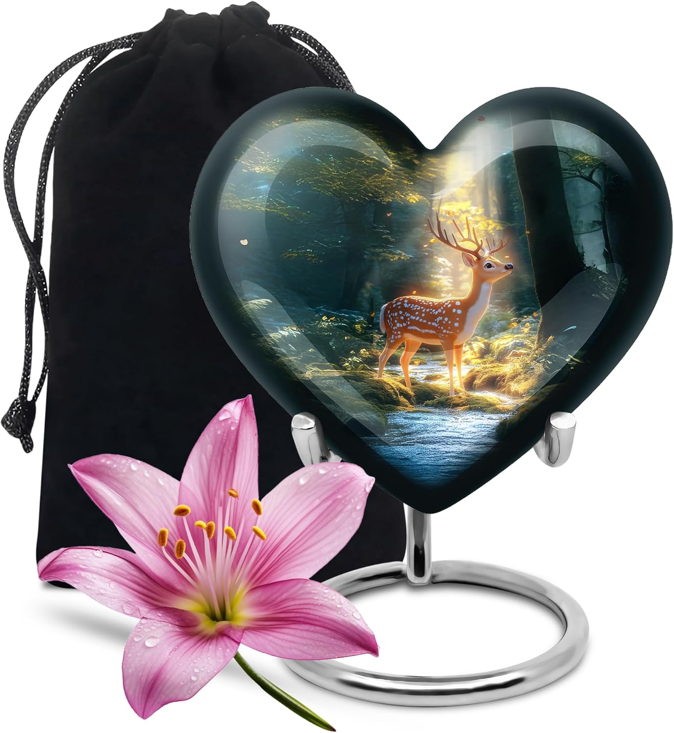 The YATHABHISA Deer Cremation Urn is a beautifully handcrafted tribute designed to honor the memory of a beloved family member. Featuring a delicate Deer in flight, this urn symbolizes joy, freedom, and the spiritual presence of those who have passed. Made from durable materials, it securely holds the ashes of a human adult, making it ideal for funeral ceremonies, burial, or home memorial displays. The medium size is perfect for honoring a father, mother, or loved one with elegance and respect. This Deer urn for ashes is not just a functional container—it’s a meaningful expression of love and remembrance. Whether given as a memorial gift Deer urn or chosen for personal reflection, it offers a timeless way to keep their spirit close. With its detailed design and secure lid, this cremation urn for human adult ashes provides peace, beauty, and dignity in one graceful form.