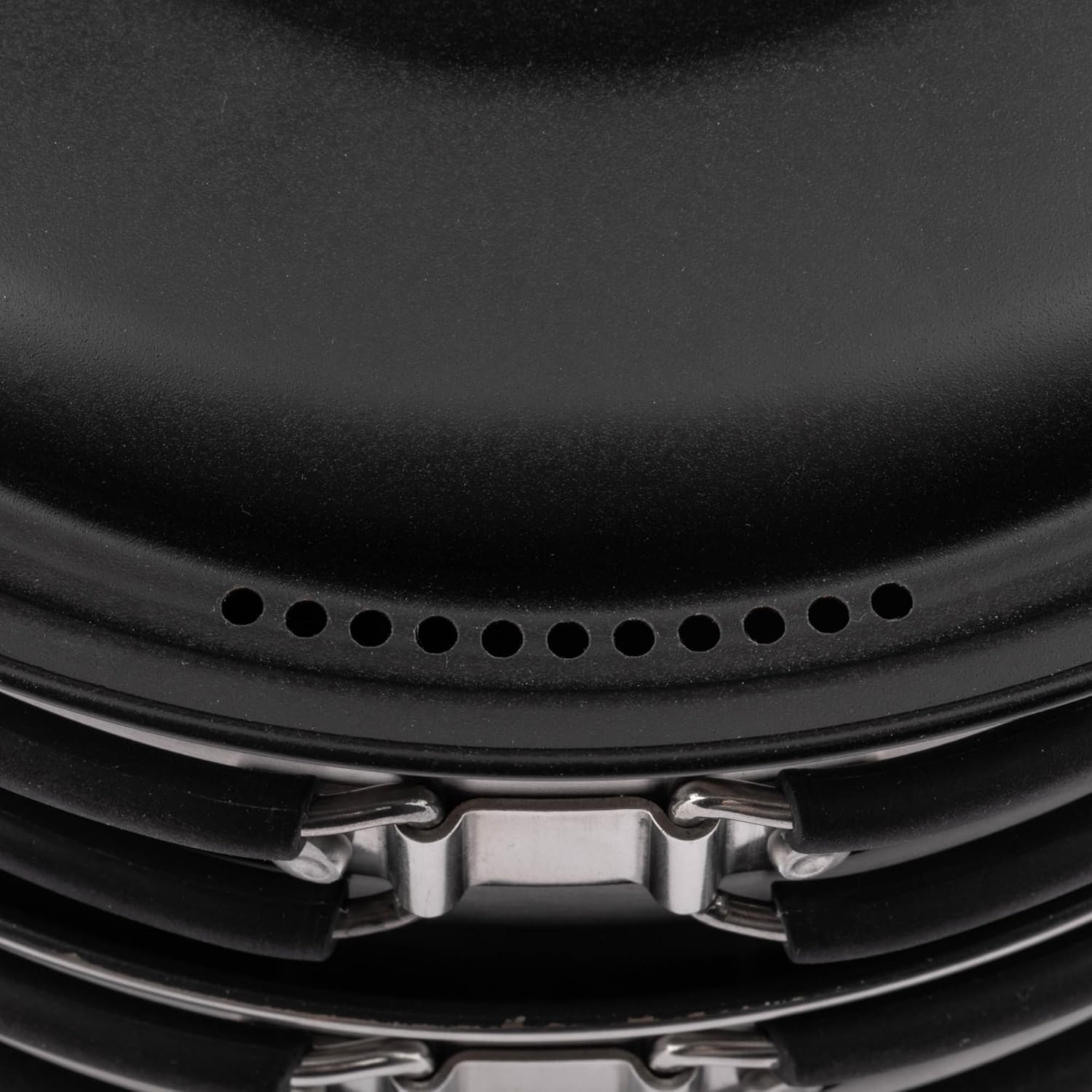 The Dimego camping pot set enhances your outdoor experience with functionality and quality. Thanks to its innovative ceramic coating, nothing sticks, allowing you to focus fully on cooking. The practical stacking function also makes the set space-saving and easy to transport. The thermally insulated handles provide a secure grip, while the lid of the set has a practical pouring aid that makes serving your dishes easier. This versatile pot set is not only ideal for camping adventures, but also perfect for home use on all types of stoves. With its robust construction and thoughtful features, the Dimego camping pot set is the ultimate choice for campers, bushcrafters, anglers, festival goers, and anyone who loves the freedom of cooking and eating outdoors.
