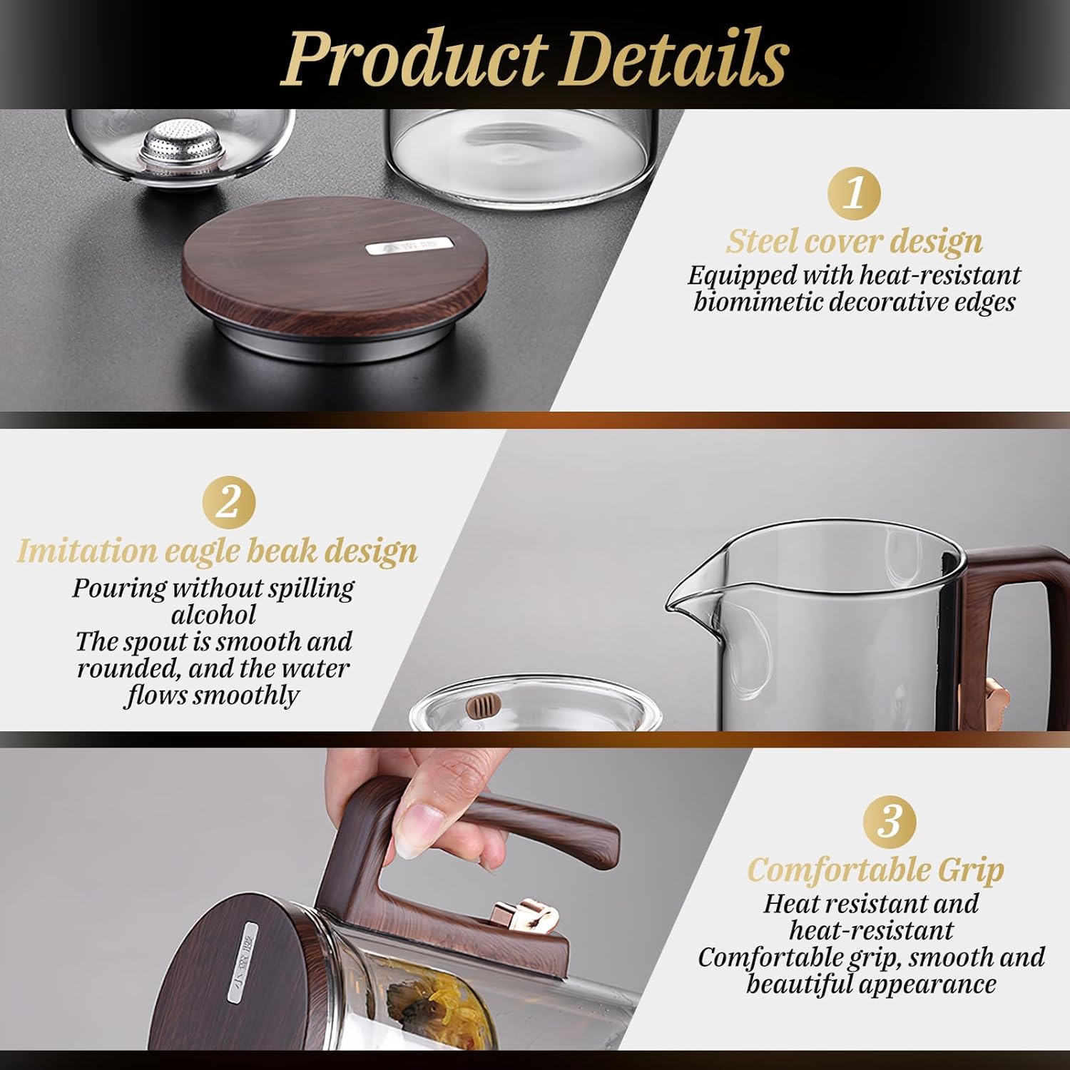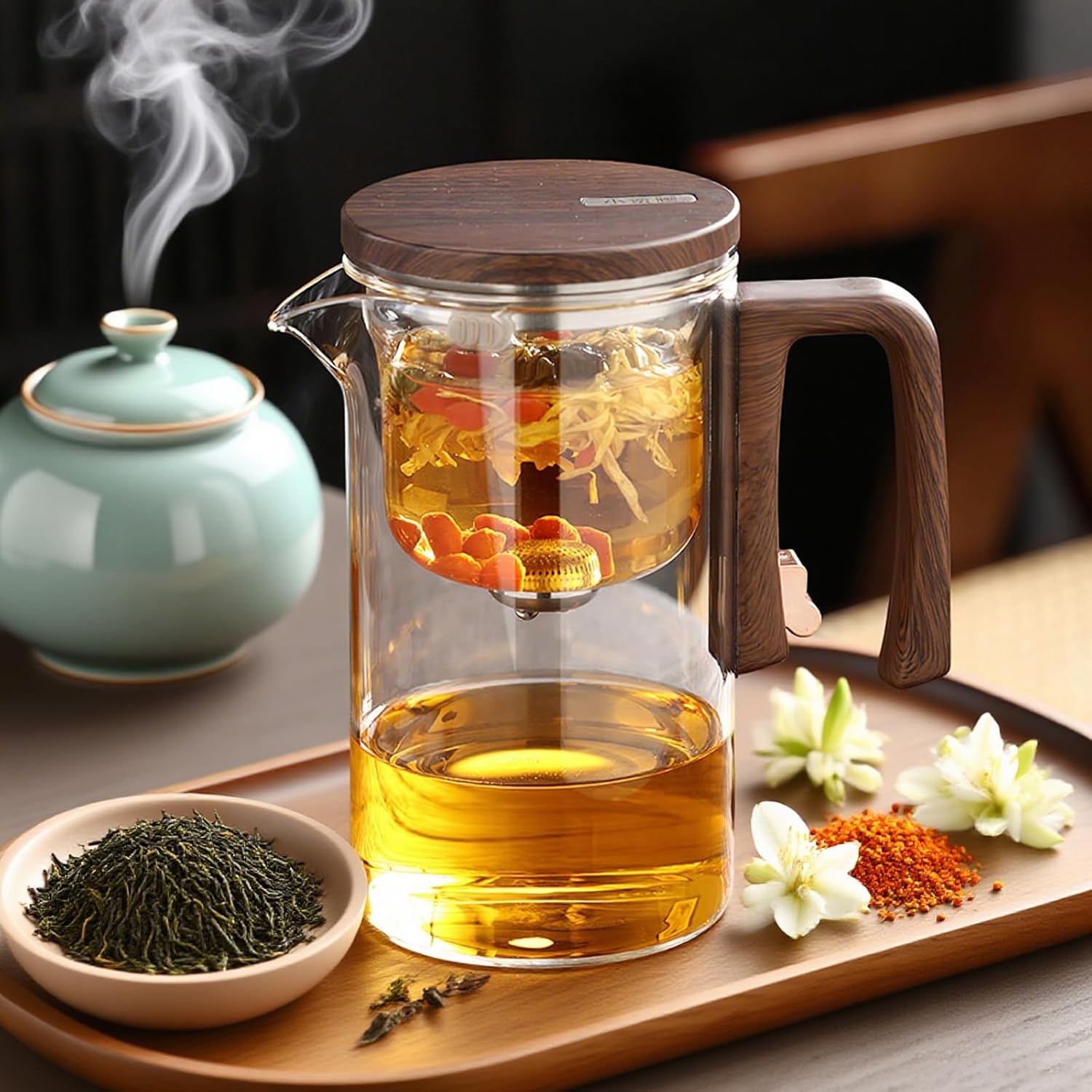 Kytree Enchanti Tea Pot – 720ml Magic Teapot with Water Separation & InfuserTransform your tea ritual with this innovative 720ml magic teapot, blending sleek design and smart functionality. Its magnetic water separation system effortlessly isolates tea leaves from liquor, while the heat-resistant borosilicate glass ensures safe brewing for hot or cold beverages.Why Choose Kytree Teapot?Magic Water Separation: Magnetic one-touch filter automatically separates tea leaves from liquor, eliminating traditional brewing hassles.Heat-Resistant Glass: Premium borosilicate glass withstands thermal shock; compatible with hot/cold drinks (not for direct electric stove heating).Anti-Drip Spout: Precision-designed spout prevents dripping during pouring, keeping surfaces clean and tidy.Minimalist Elegance: Stemless modern design combines practicality with decorative appeal for stylish tea displays.Versatile Use: Ideal for tea enthusiasts and professionals; perfect for homes, kitchens, or living rooms.SpecificationsMaterial: GlassCapacity: 720ml (25.4oz)Dimensions: Height: 6.1“/15.5cm, Diameter: 3.35”/8.5cmColor: Clear and BrownIncludes1x Glass Teapot1x Infuser