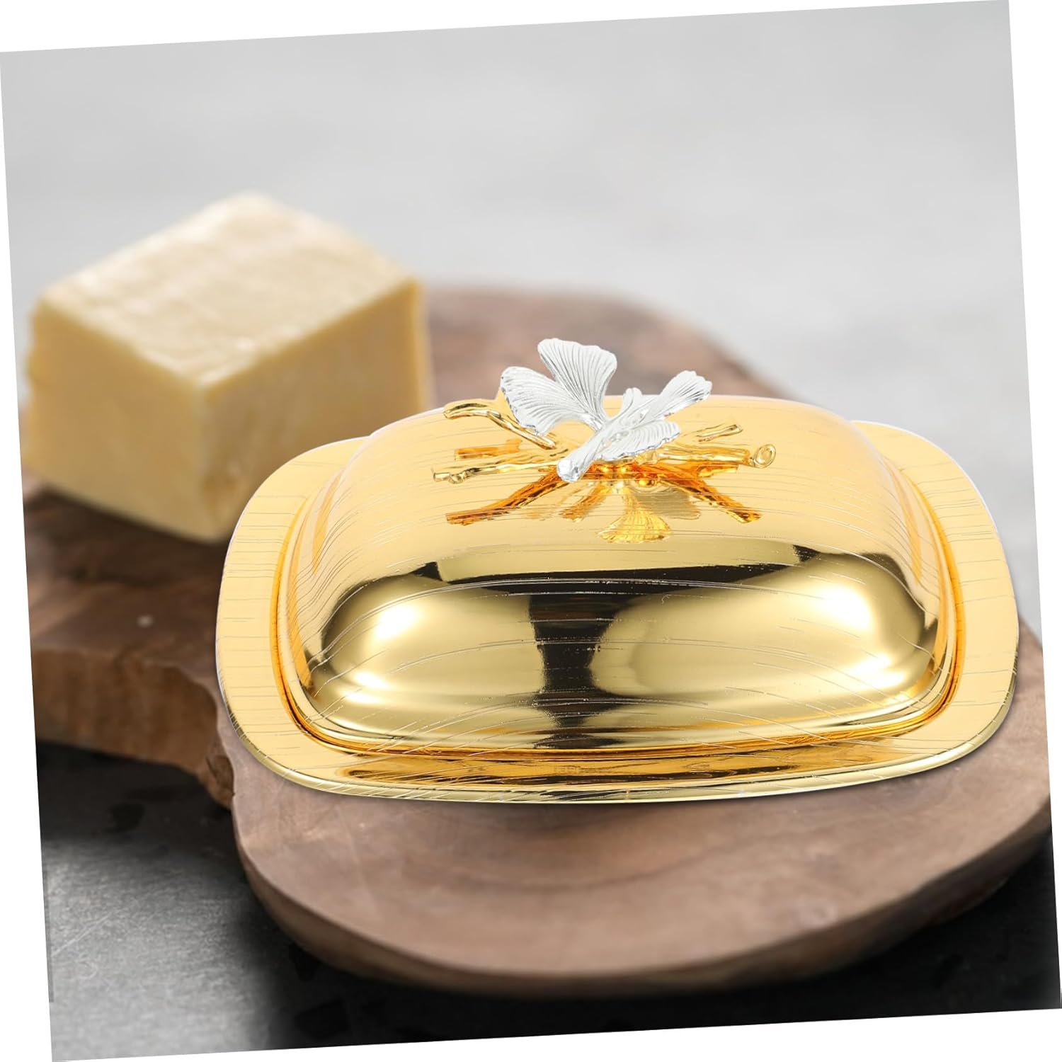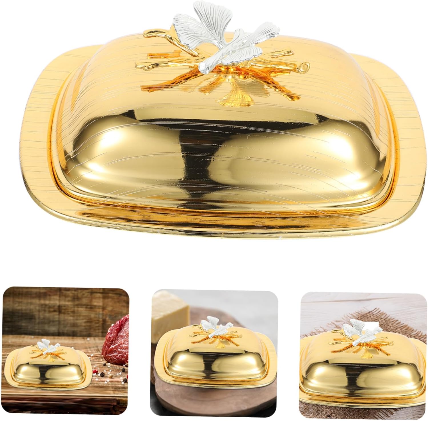Package Include 1 x butter dish Characteristics -Product Info:Butter dish with cover -Size:19.20X14.00X8.50cm/7.55X5.50X3.34in butter bowl -Size:16.60X16.60X8.70cm/6.52X6.52X3.42in Kitchen Butter Holder -Material:Iron kitchen cheese holder -Size:19.00X14.00X8.50cm/7.47X5.50X3.34in metal butter dish -Made of stable and practical iron materials, , reusable, rest assured, safe to use butter holder. -Multi-purpose, great for storing butter, cheese, desserts, etc. in the kitchen, keeping food fresh butter dishes. -Suitable for restaurant, dessert shop, kitchen, use it yourself, or present it to your friends as a butter keeper. - ColorGolden large capacity butter dish -This Butter Box is made of iron materials, practical and for use restaurant butter tray. -The European style appearance makes it a great addition to your kitchen, delicate and practical butter dish.Goods Informationbutter dish with lid The simple design, can make your kitchen, dining room and so a higher level.dessert tray This Butter Holder is made of iron material.covered butter dish This butter dish can be used to store butter, can also be used to store cheese, dessert, etc
