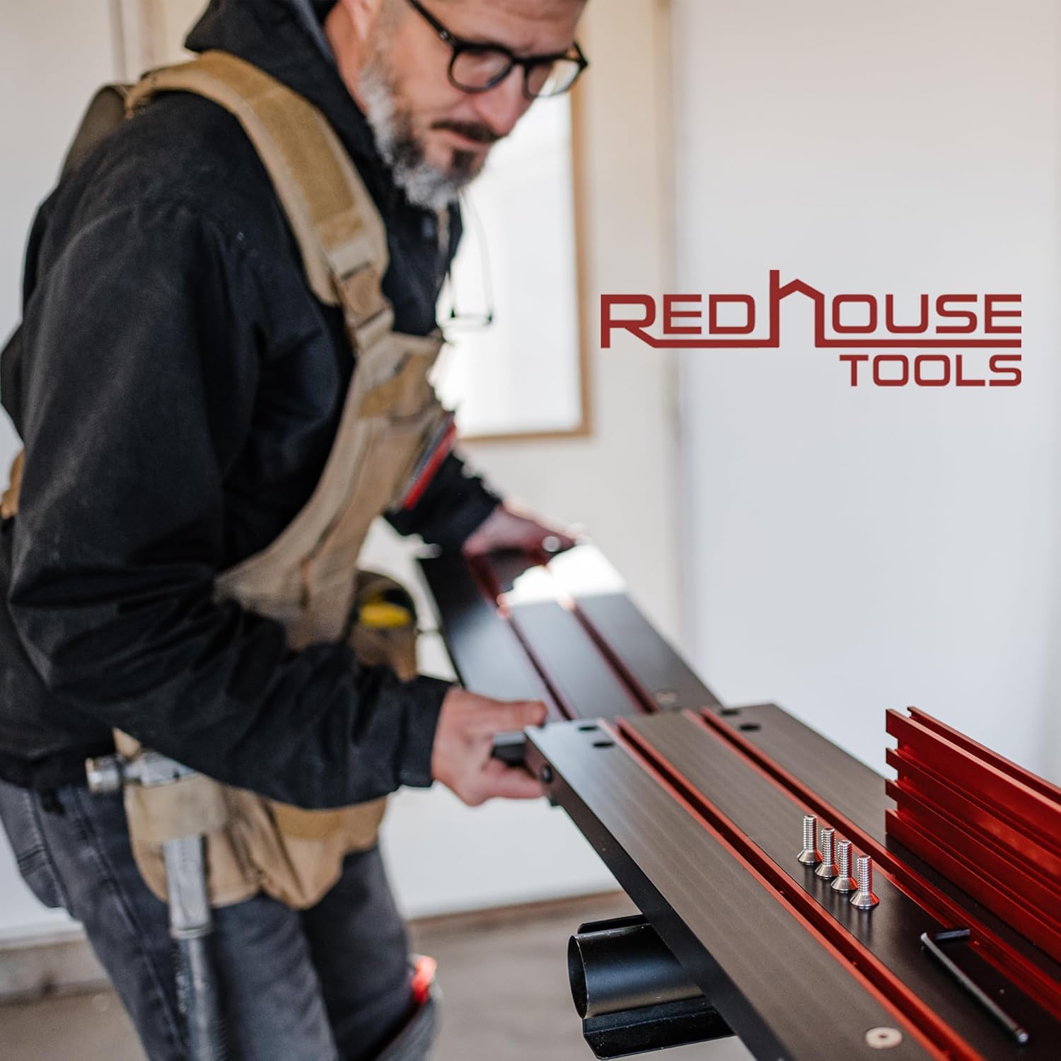 Heavy Duty T Track EZ-Wings Extensions (Set of 2)T Tracks WoodworkingEZ-Wings is a (provisionally) patented, universal, lightweight, aircraft-grade aluminum modular support system for miter and chop saws. Its unique, tool-less mounting design allows the device to be attached or detached from any miter saw quickly as each wing/extension weighs less than 5 lbs and can be used on any job site stand or work bench. EZ-Wings extensions add two feet of length to your system. They install quickly and easily to either the infeed or outfeed. Universal T-tracks and flip-down legs are included. Wood WorkingEZ-Wings Extensions enhance your system by seamlessly integrating a variety of woodworking accessories, which ultimately improves your woodworking projects. Designed for easy installation, these extensions allow you to quickly adapt your setup to meet your needs. Whether you’re securing materials, setting precise stops, or customizing your workbench, they offer the versatility and adaptability required for a wide range of applications. This not only improves the efficiency of your workflow but also ensures greater accuracy and consistency in your projects, making them an essential addition to any woodworking setup.About UsRed House Tools was formed by a couple of woodworkers with the mission of providing high quality, safe products, tools and accessories for woodworkers, skilled tradespeople, and DIY enthusiasts. Our company is passionate about woodworking and product innovation. We strive to continuously develop creative, safe, and effective woodworking products and solutions for fellow woodworkers and professionals.Includes(2) EZ-Wings Extensions with T-Tracks(4) Splice PlatesInstallation Hardware