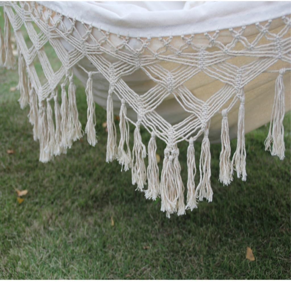 High quality: This hammock is made of high-density cotton, which is soft, breathable, and skin friendly. Not only comfortable, sturdy and durable, but also long-lasting.Product name: HammockColor: Various colors availableSize: otherWeight: 1.2kgApplication: Outdoor, garden, balcony, yard, home decoration, campingMaterial: nylonPortable and easy to set up: The hammock has a detachable anti roll balance beam that can be easily removed during cleaning, and the design is very beautiful. Comes with a drawstring tote bag that can be folded into a compact size after packaging, making it very easy to store or carry. Put it in the backyard or other places.