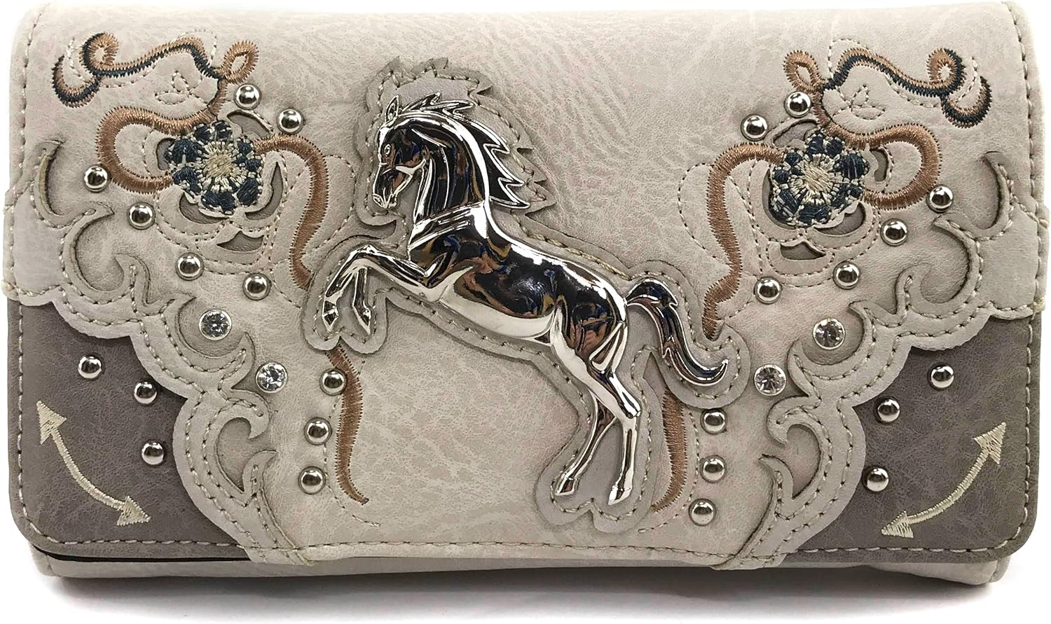 Justin West Floral Embroidered Studded CCW Concealed Carry Shoulder Purse Handbag Wallet