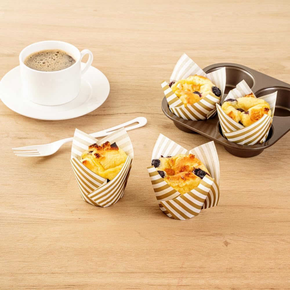 Enhance your dessert presentation with ease and style. Panificio Brown Greaseproof Tulip Cupcake Liners feature a greaseproof coating that ensures the effortless removal of baked goods, preventing any unsightly sticking. Crafted from heavy-duty paper, these greaseproof cupcake liners maintain their shape in the oven, providing reliable baking results and reducing waste. The elegant tulip design beautifully showcases cupcakes and muffins, making them an eye-catching centerpiece at any event. With a height of 3.15 inches and 3.5 ounce capacity, these disposable baking cups accommodate sweet treats of various sizes while ensuring optimal performance. Made from paper, they offer a sustainable option for eco-conscious establishments. Elevate your bakery's offerings with these versatile and practical liners. Sold in a 500 count box.
