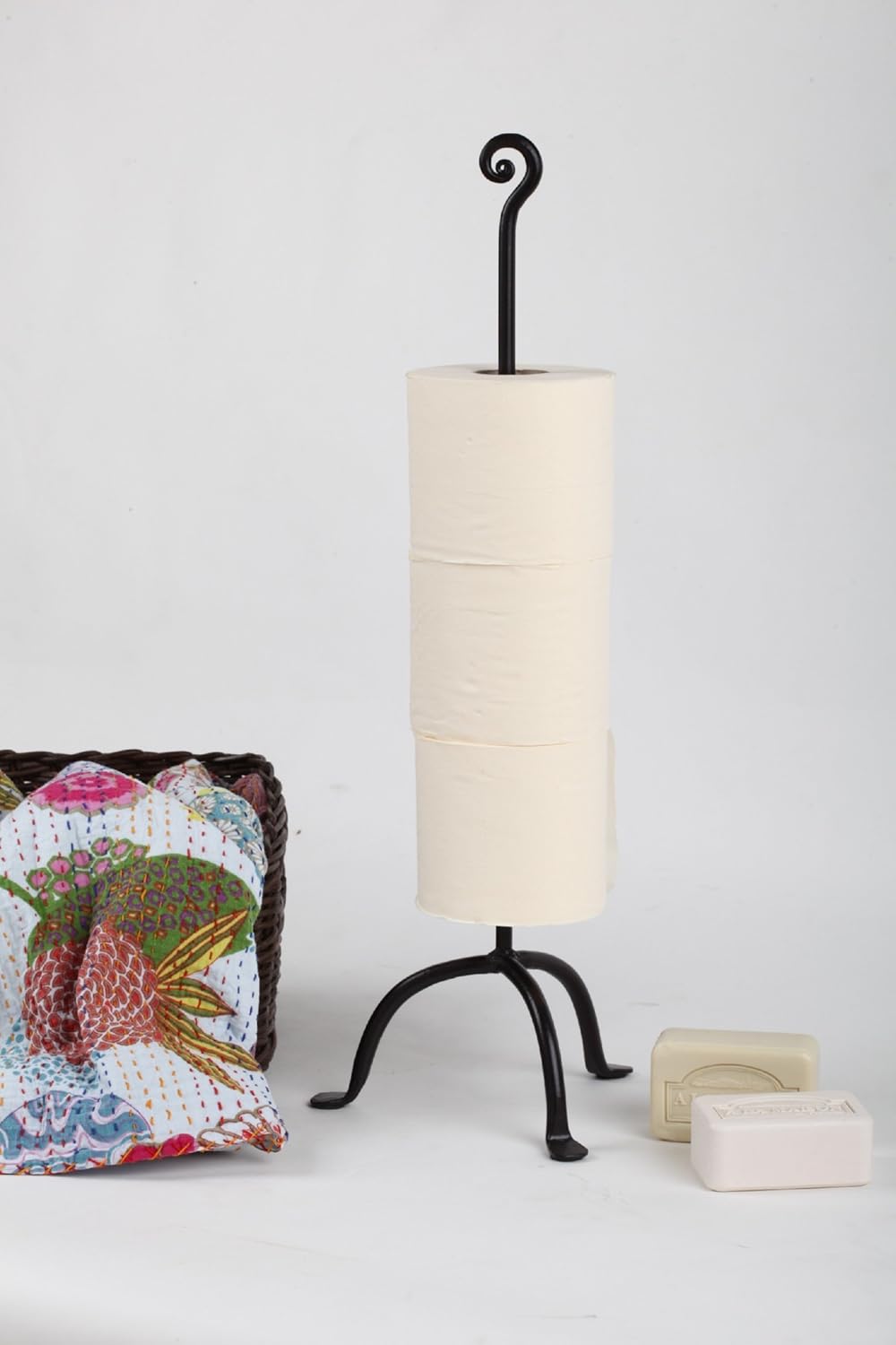 Enjoy your new Handmade Paper Rolls Storage Holder This decorative piece will add style and a fine touch to your bathroom. High quality, hand-crafted provides 4 toilet paper rolls storage. This Beautiful hand-crafted holder stand can be moved anywhere in the bathroom - perfect for bathrooms with no wall and will provide a 4 toilet paper rolls storage. Combine functionality and beauty with this Reserve Paper Holder Stand This black stand alone toilet paper holder is easy to move around when cleaning. It stands up sturdily, roll replacement made easy. Extra tissue is readily accessible by a simple decorative rod. Style and Quality At RTZEN-Décor we are dedicated to produce for you high quality, durable and stylish decorative items. The art of blacksmithing is more relevant and charming now than ever, it is both beautiful and functional in modern 21st century homes and offices. Whether you live in the city or in a farmhouse, whether you like modern design or a more antique rustic/vintage style - this decorative reserve paper holder will fit beautifully in your home and office. This iron artistic hand-crafted decorative 4 spare paper dispenser stand is suitable for any interior, and will beautifully fit your bathroom both at home and office. It is suitable both for modern, rustic and other design styles. Long-lasting Rot Metal TP Holder These strong toilet paper holders are made from solid iron with special plating which makes them durable and long-lasting. Perfect Gift Idea Offer this Decorative Paper Holder Stand to someone special. Easy to clean Forget wood items & Vinyl items. You’ll now enjoy cleaning in no-time Handmade Wrought Iron Products Line by RTZEN-Décor.