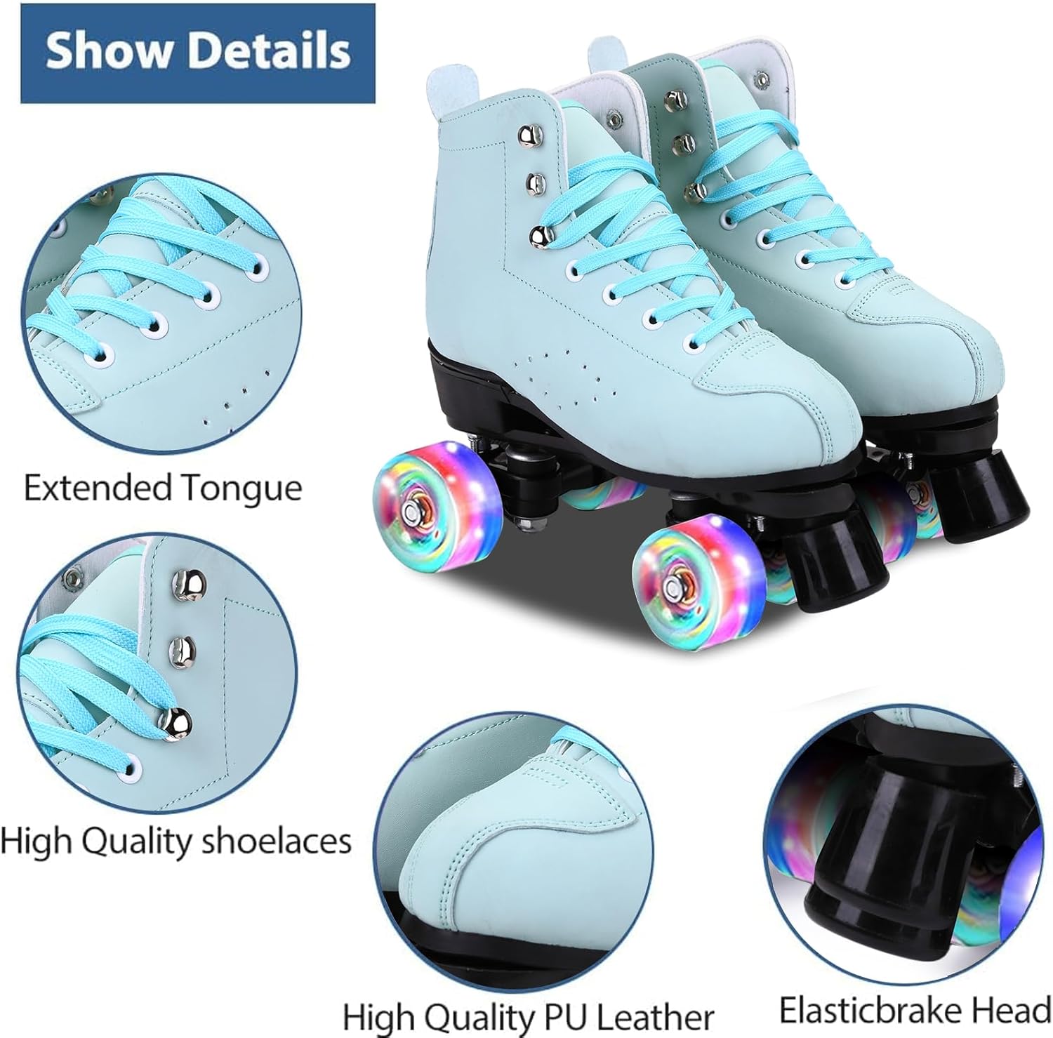 Material: Microfiber LeatherType,Weight: 3kg Our Size---Heel To Toe(cm)---US SizeEU: 37 ---23 ---US Women: 6; US Men: 5 EU: 38 ---23.5---US Women: 6.5 ; US Men: 5.5 EU: 39 -- 24 ---US Women: 7; US Men: 6 EU: 40 ---24.5 ---US Women: 7.5 ; US Men: 7 EU: 41--- 25---US Women: 8.5 ; US Men: 7.5 EU: 42 ---25.5 ---US Women: 9; US Men: 8 EU: 43 ---26 ---US Women: 9.5; US Men: 8.5 EU: 44 ---26.5 ---US Women: 10 ; US Men: 9 EU: 45 ---27 ---US Women: 11 ; US Men: 10 EU: 46 ---27.5 ---US Women: 12 ; US Men: 11 Note: Manual measuring, please allow 1 ~ 3cm error. Package Included: double row roller skates, shoe bag,wrench Bearing