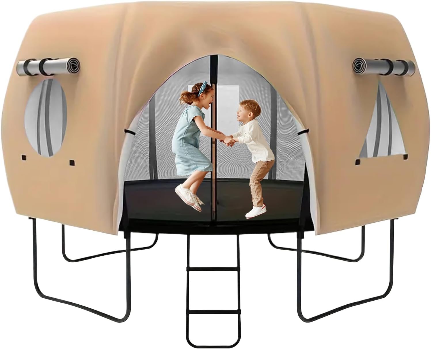 • All-Around Freshness: The trampoline shade is equipped with a six-sided mesh window structure that supports 360-degree airflow and high-density ventilation, enabling unobstructed visibility for children and adults engaging in active play or leisure time beneath it
