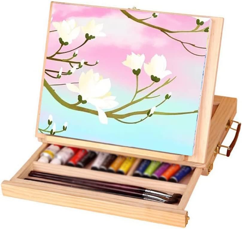 Made of beech wood, strong and light.Easy to install and disassemble.Drawer design is used for easy storage.Built-in 4 adjustable gears, easy to adjust. for students and artists who want to paint outdoors or outdoors.Name: easelMaterial: BeechAdjustable height: 5-28cmnotes:1. Due to manual measurement, please allow a difference of 1-3cm.2. Due to the computer screen, the actual color may be slightly different from the picture, please understand, thank you.3: Only the main product is sold, other decorations are not sold.packing list:1 x easelWidely Applicable: the table easel can be widely applied in many places, not only to display smuctions.all paintings, mini canvases, artwork in art galleries, but also as photo stands, framed photographs, postcard stands at parties, gatherings, weddings, as well as for displays and signs in offices, bedroom, living room