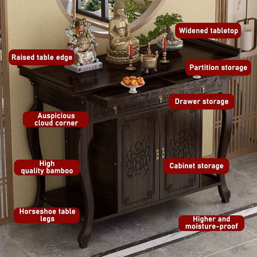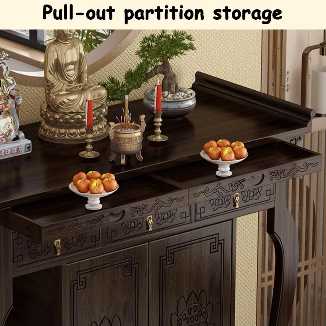 Welcome to YVYKFZD store:- Need a small place to focus, meditate and pray? Our handcrafted small altars are the answer. The versatile table serves as a functional accent for various settings in your home- Combining Chinese culture, exquisite carved and bilateral heightened design to prevent falling. Altar with pull-out shelves has enough space to store your tools, incense candles, incense burners and offerings. Any items used for specific rituals or spiritual activitiesSpecification:● Name: Personal shrine altar table, meditation storage table, day of the dead altar stand, buddha statue offering table, pet ashes house pooja table, home incense table buddhist shrine prayer stand riser● Material: Bamboo● Color: Walnut● Size: 66x40x88cm/25.9"x15.7"x34.6", 80x40x88cm/31.4"x15.7"x34.6", 100x40x88cm/39.3"x15.7"x34.6", 120x40x88cm/47.2"x15.7"x34.6", 140x40x88cm/55.1"x15.7"x34.6", 66x40x100cm/25.9"x15.7"x39.3", 80x40x100cm/31.4"x15.7"x39.3", 100x40x100cm/39.3"x15.7"x39.3", 120x40x100cm/47.2"x15.7"x39.3", 140x40x100cm/55.1"x15.7"x39.3"● Purpose: Can be used for prayer, incense burning, divination, offering, meditation, worship, ancestral hall, temple, worship, sacrificePackage Includes:1 * Personal Shrine Altar RackNote:1. Please check the size before buying. Due to manual measurement, an error of 0-3cm will occur. Hope for understanding2. The product photos do not contain items other than the product3. Please note that due to different monitors, there may be slight color difference, please understand